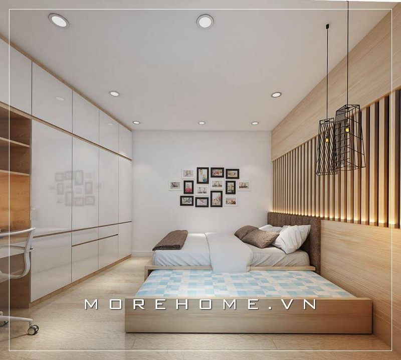 Giường ngủ thông minh có tính năng tích hợp ngăn kéo, tab đầu giường liền kề giúp không gian phòng ngủ trở nên gọn gàng và có thể ngăn nắp hơn.